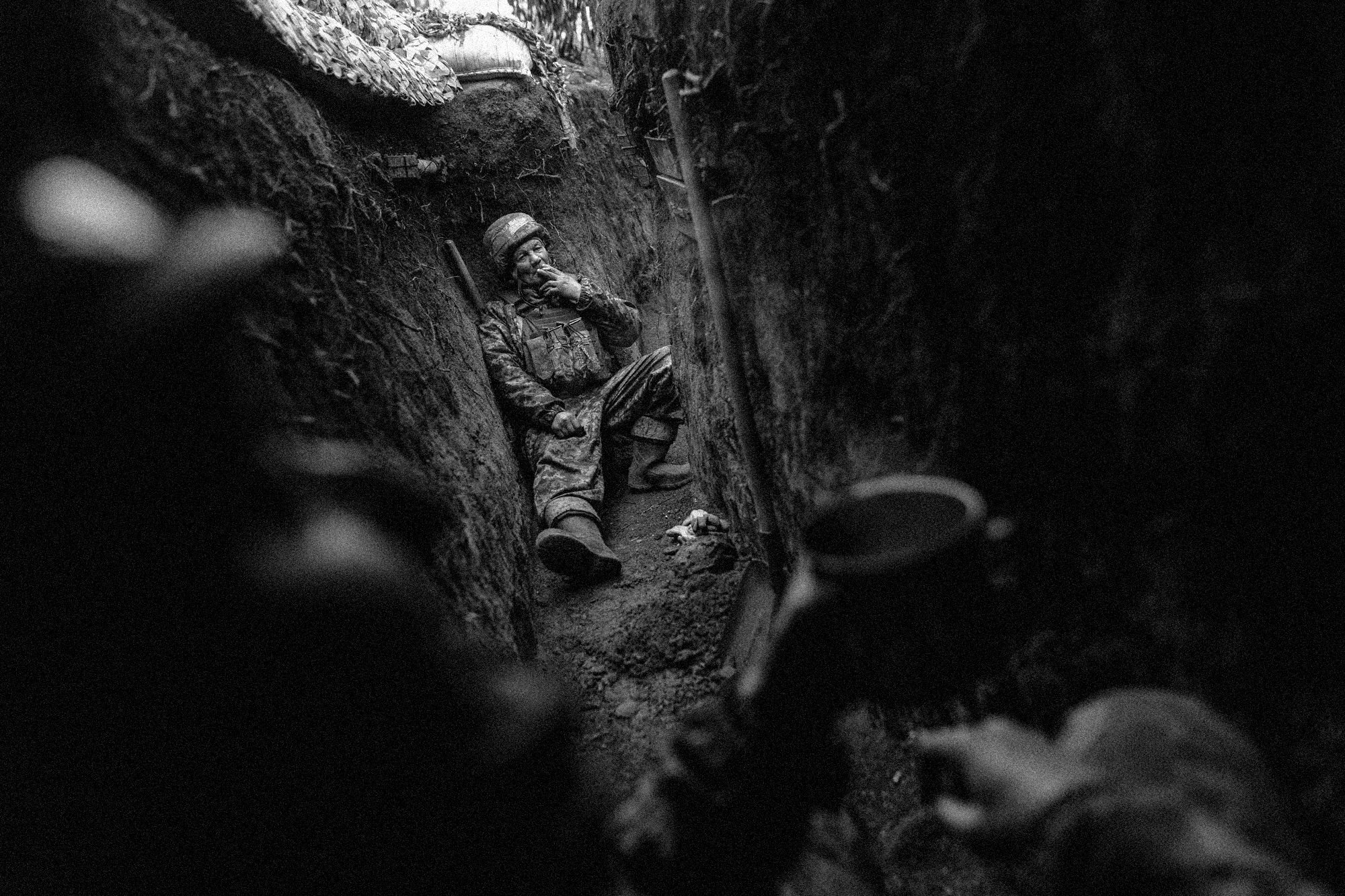 — Я сидел в норе, — рассказывает мне знакомый пехотинец Денис, недавно вернувшийся с реабилитации после ранения. — Сидел там с автоматом, не спал несколько дней. А сзади мои типы спали — не понимаю, как им удавалось. У меня были галлюцинации: я сидел, смотрел на глиняную стену, а на ступеньке лежал кусочек фольги, его шевелило ветром, и он во что-то превращался.