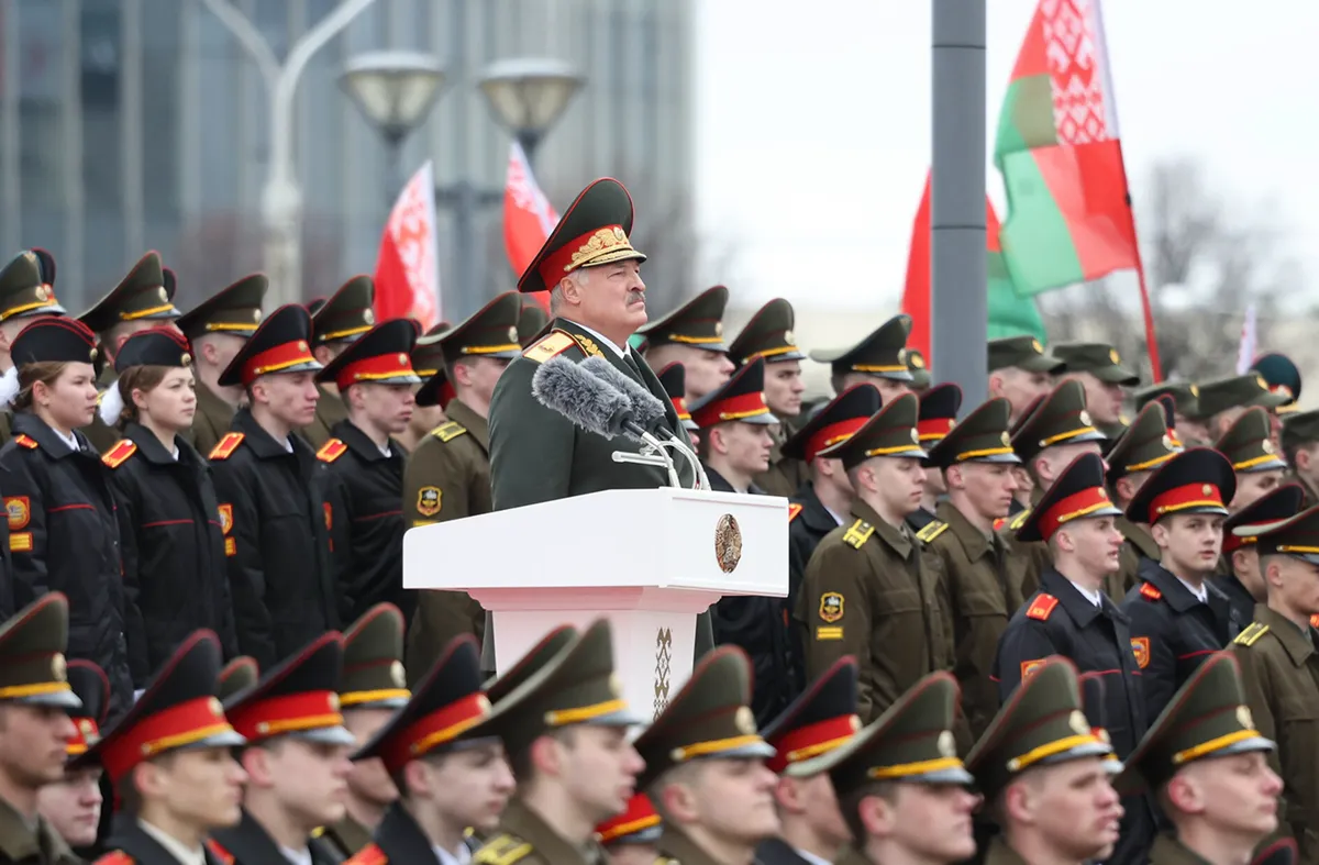 Military servicemen pledge allegiance to Belarusian President Alexander Lukashenko following his inauguration ceremony in Minsk, Belarus, 25 March 2025. Photo: EPA-EFE