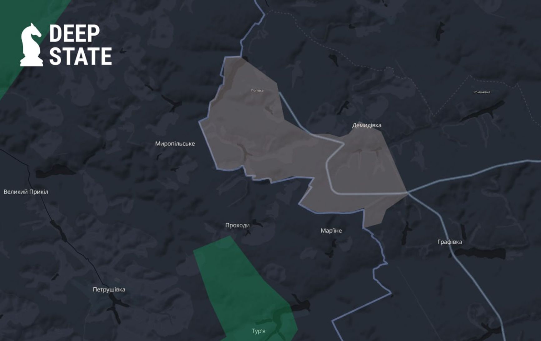 DeepState — украинский проект, поддерживающий регулярно обновляемую карту контроля территорий в зоне боевых действий в Украине и публикующий сводки о ситуации на фронте на основе открытых источников (OSINT) и информации от украинских военных.
