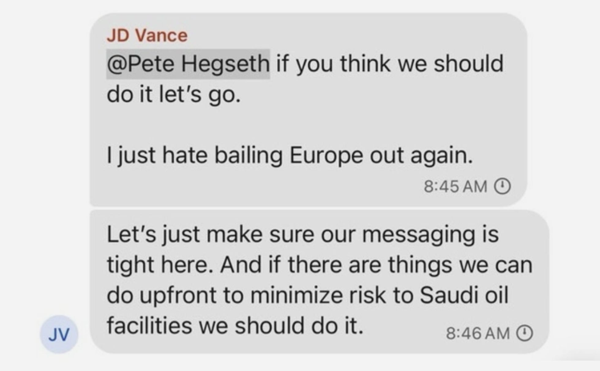 По словам анонимного дипломата из Великобритании, утечка подтверждает предположение о том, что именно Вэнс — проводник враждебности США по отношению к Европе, от которого другие члены администрации Трампа и даже сам Трамп не хотят отставать, чтобы не показаться слабыми.