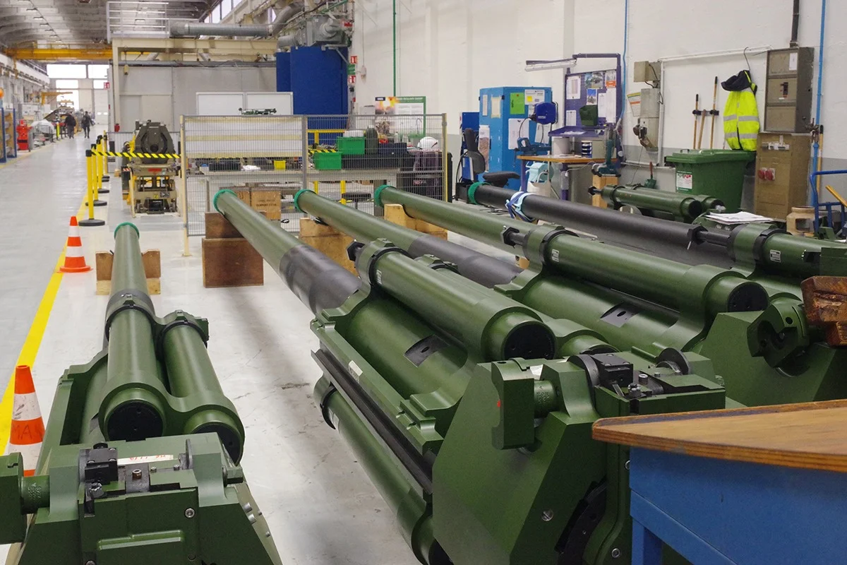 …Грубо обработанные 3-тонные «заготовки» будущих стволов «Цезарей» из сложного сплава ждут дальнейшей обработки на открытом воздухе. Потом они пройдут около тридцати операций, потеряв при этом 1200 кг, прежде чем стать компонентами оружия. Детали пушки также проверяются с помощью рентгеновских лучей, ультразвука и магнитного поля для обнаружения нежелательных частиц в металле.
