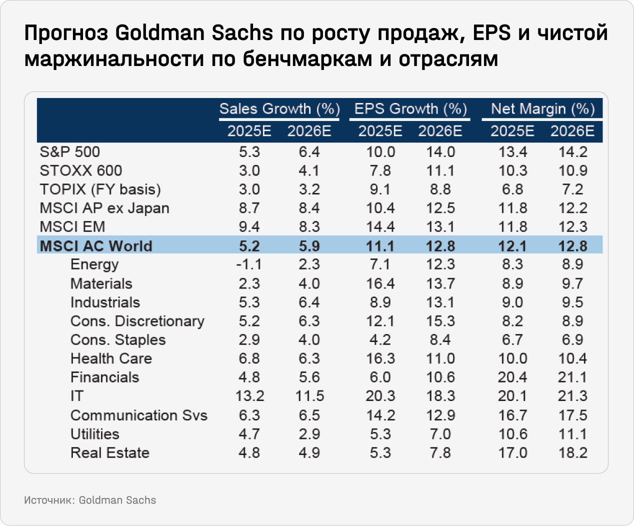 GQG Partners ожидает «нового импульса к росту» активов в EM после затяжной «медвежьей» фазы, длящейся, по их подсчетам, с 2010-х. Ключевыми драйверами станут рост выручки, прибыли на акцию и расширение чистой маржинальности, которая, согласно прогнозам, к 2026 году достигнет 12,3% для MSCI EM — против 14,2% у S&P 500 и 10,9% у STOXX 600.
