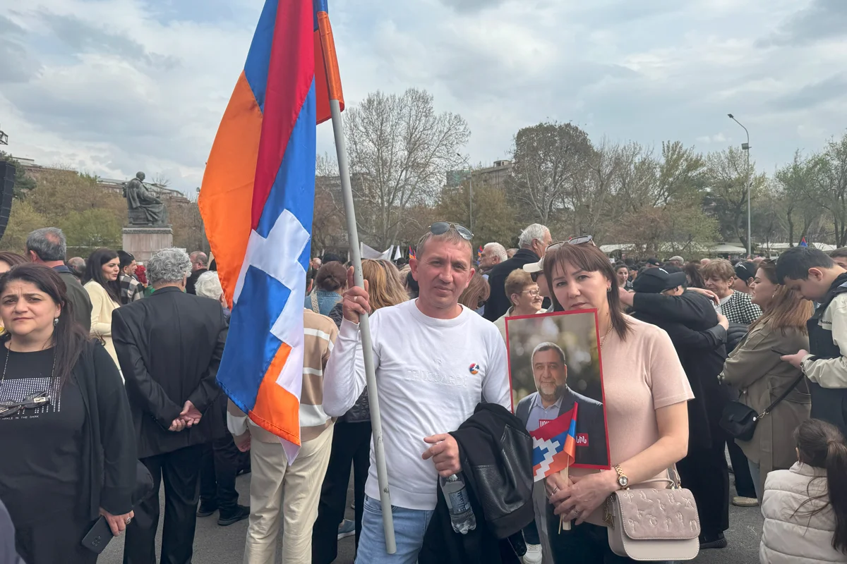 Сегодня среди ключевых требований митинга организаторы называли: обеспечить возможность возвращения беженцев на родину, защитить их социальные права в Армении, освободить содержащихся в Баку пленных, защитить уничтожаемое властями Азербайджана культурное наследие и др. Площадь начинает заполняться за час до начала акции, вокруг все громче слышен арцахский диалект, по которому можно легко узнать жителей региона. До исхода из республики Лилия и ее супруг жили в Аскеране, сегодня они пришли на акцию с портретом бывшего госминистра НКР Рубена Варданяна.