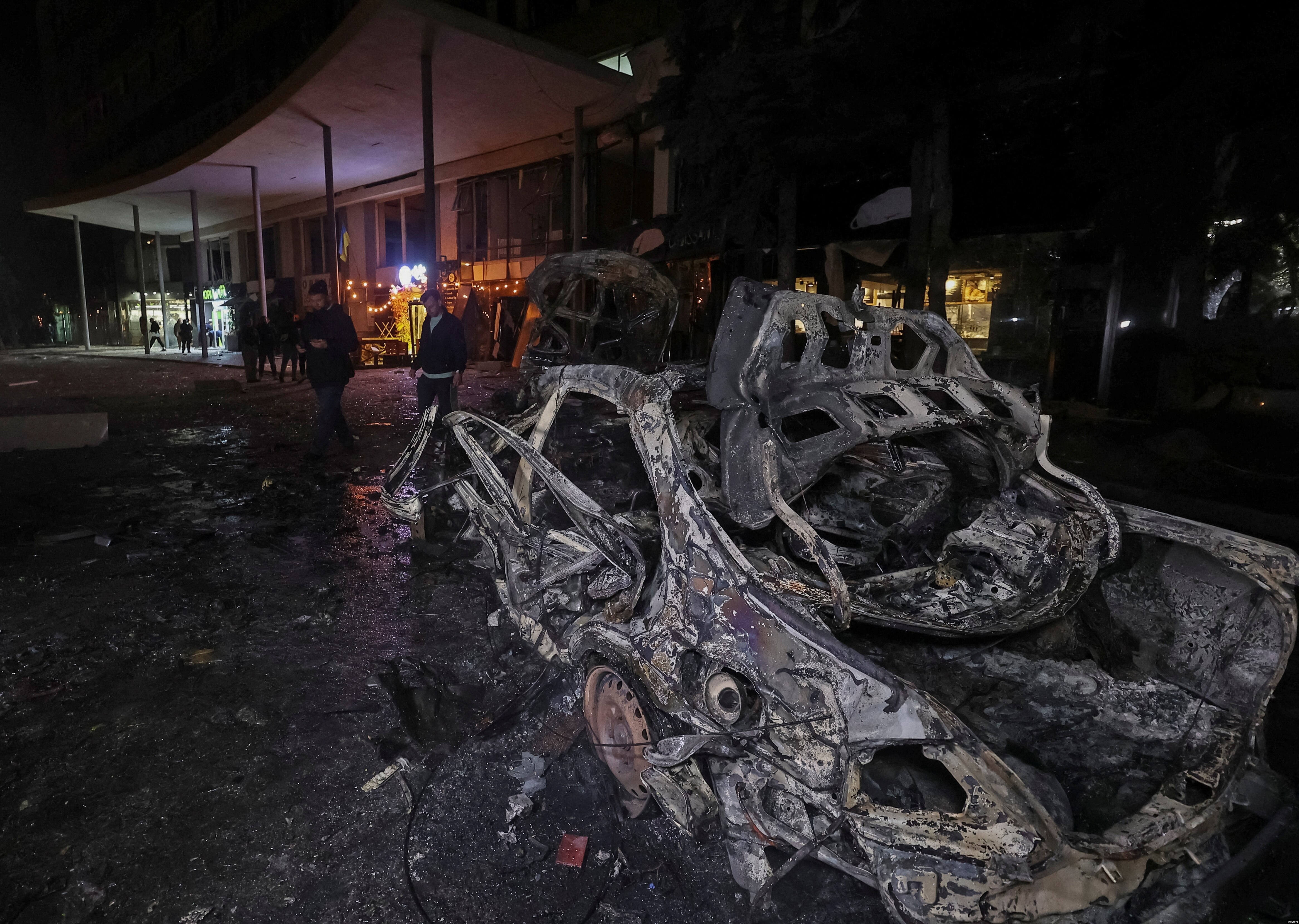 Массированной атаке подверглись в общей сложности три района города. Разрушены частные жилые дома, повреждены офисные здания, торговые объекты, гаражи и автомобили. Один из беспилотников попал прямо в частный жилой дом — он полностью разрушен.