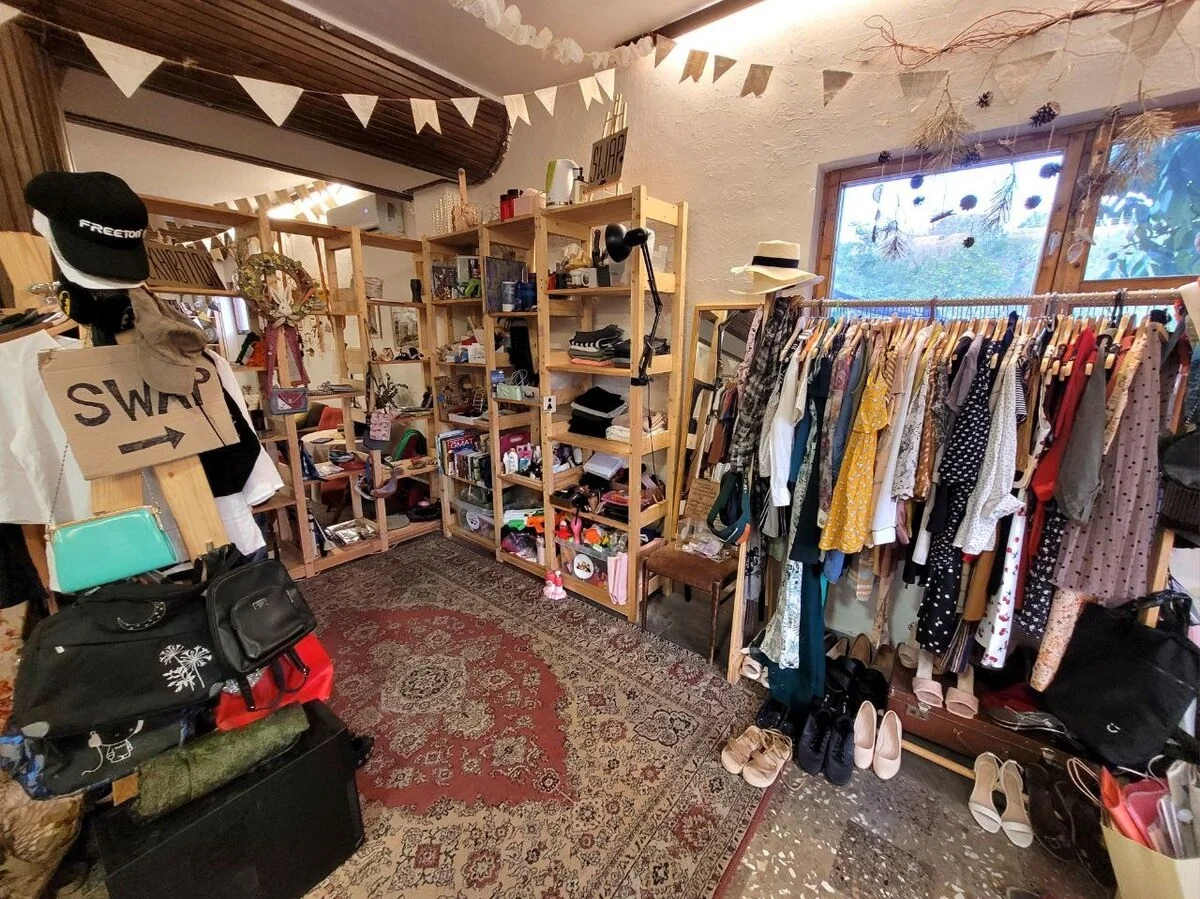 Если мы говорим про reuse, у нас есть своп, благодаря которому вещи обретают вторую жизнь. А когда мы говорим про переработку, мы говорим про наш пункт раздельного сбора. Или про компостирование. У нас есть компостные ящики, куда люди приносят органику.