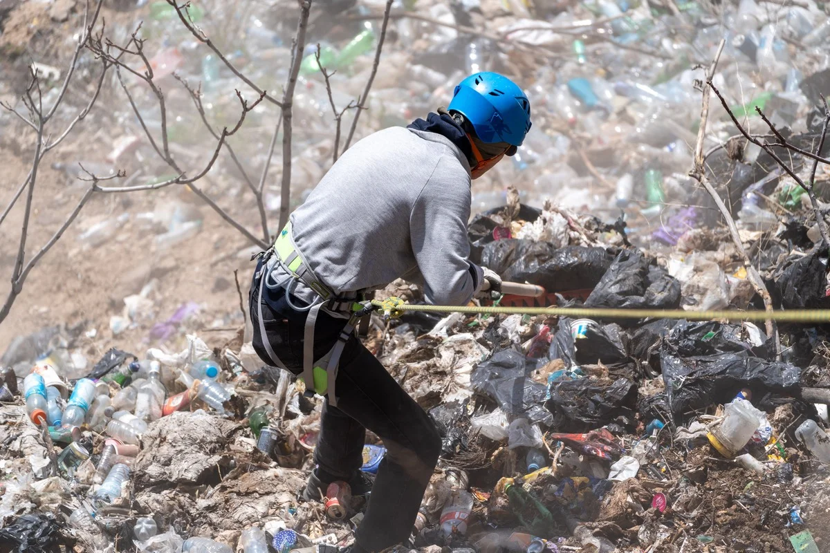 — Есть две таких территории. Это, собственно, смотровая площадка и вся недостроенная часть Каскада. Пока эта территория принадлежала фонду Гафесчана, нам не разрешали туда заходить. Вероятно, не хотели, чтобы мы рассказывали об этом мусоре в соцсетях. В 24-м году эта территория перешла под управление мэрии, и мы смогли туда попасть. Весь мусор, который там лежал, был очень старым, мы находили там банки из-под «Ягуара» 2007 года. То есть мусор сбрасывался туда годами. В конце концов мы решили эту «самую большую урну» очистить. Мы спустились туда с ребятами в касках и осознали, что высота этой мусорной кучи — два метра. Тогда мы попросили муниципалитет, чтобы он подключил технику, потому что это колоссальные объемы.