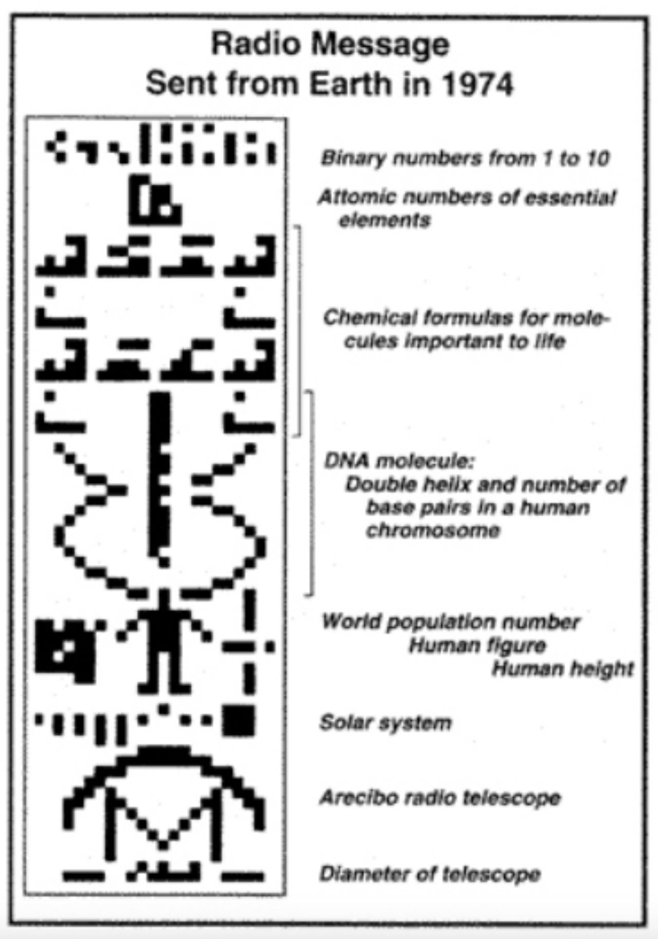 Кроме того, по мотивам конференции Фрэнк Дрейк придумал закодированное сообщение, получившее название «Криптограмма Дрейка». Оно представляло собой последовательность из единиц и нулей длиной в 1271 знак. По окончании конференции его получили все участники — в качестве натурного эксперимента будущей коммуникации. Из множества (не самых глупых) ученых лишь один, Бернард Оливер, смог понять сообщение. Так довольно быстро стало понятно, что задача межзвездной коммуникации существенно сложнее, чем могло показаться на первый взгляд.
