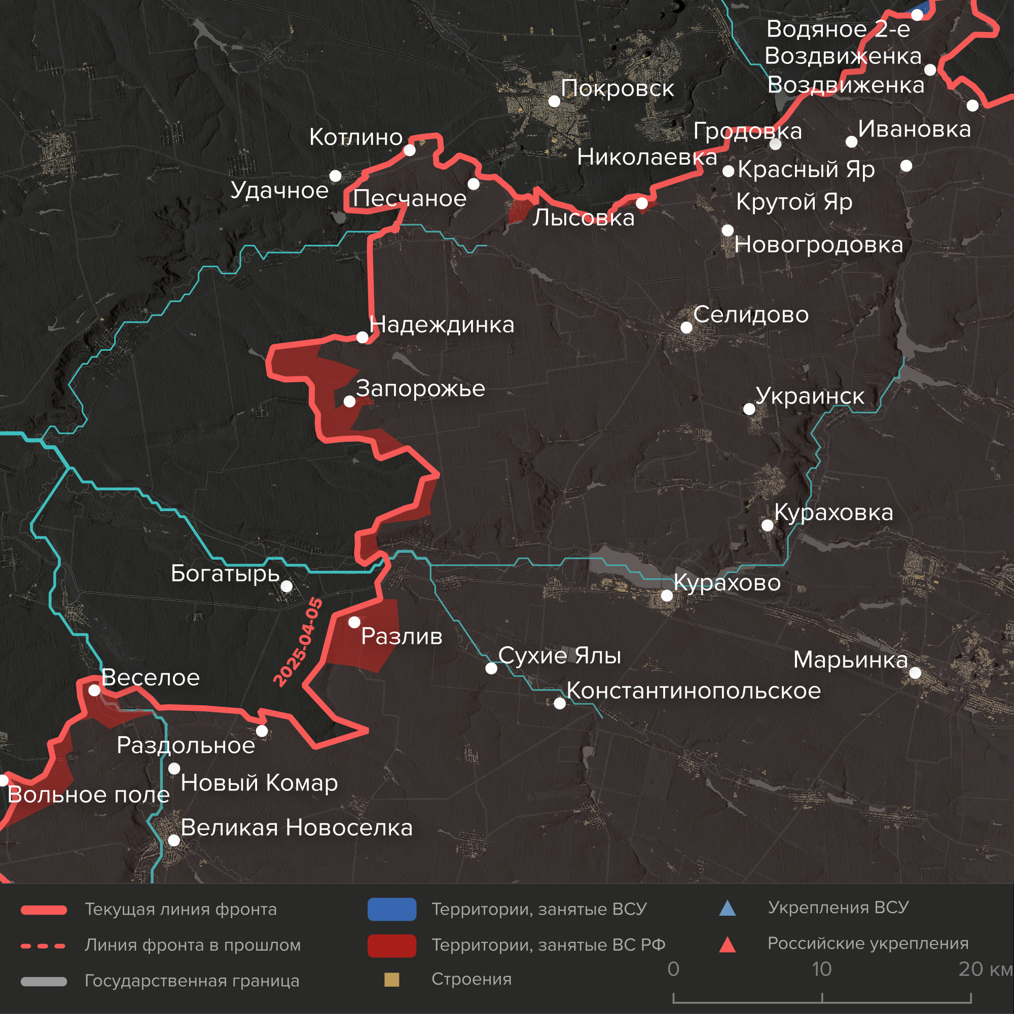 - В конце февраля и в марте ВСУ попытались остановить российские войска, вышедшие на ближние подступы к Покровску, и даже отбросить их.