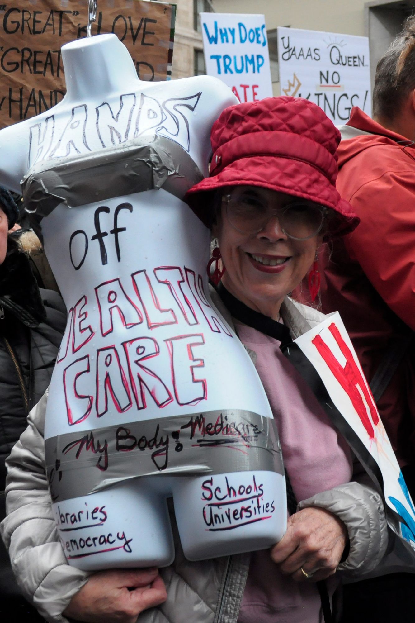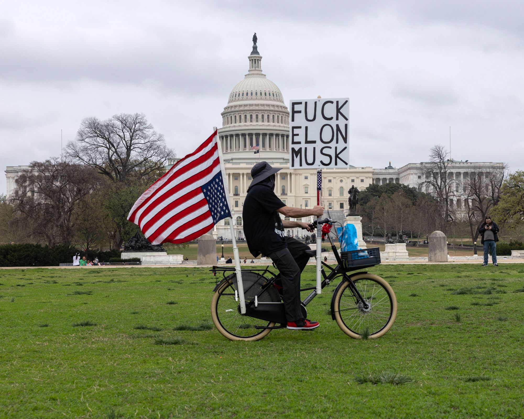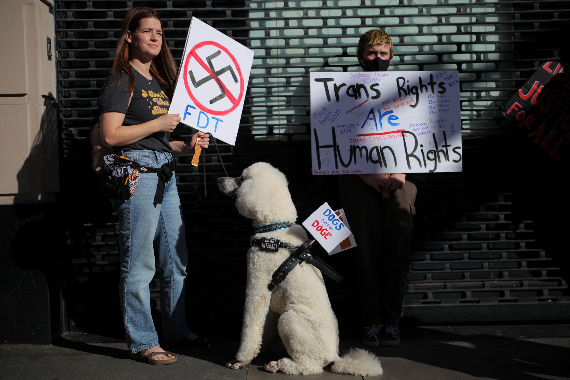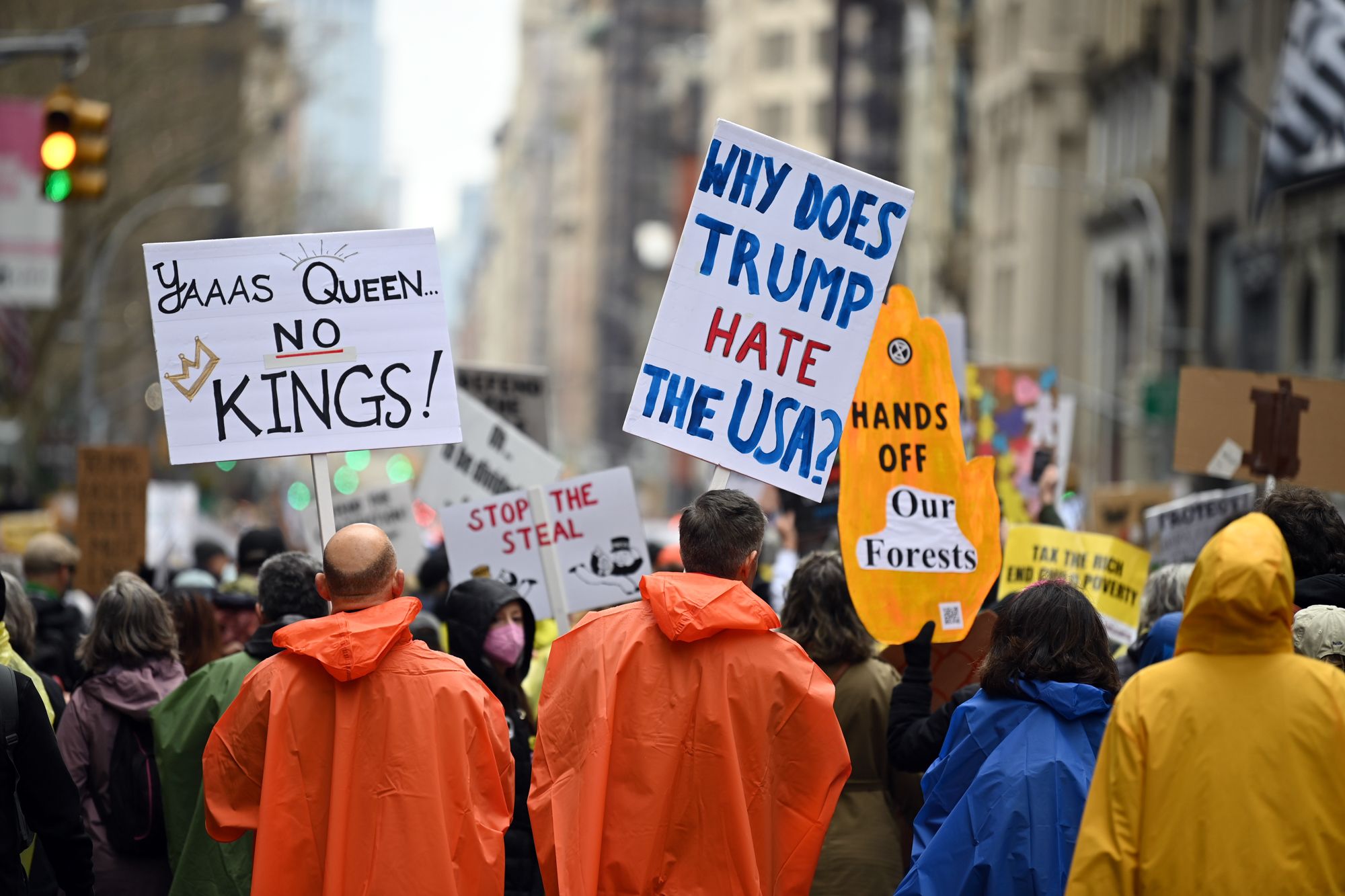 Протестующие осудили действия Трампа и его ближайшего советника Илона Маска по сокращению тысяч федеральных служащих, депортации мигрантов, ослаблению защиты трансгендерных людей, сокращению финансирования социальных программ, в том числе по здравоохранению.