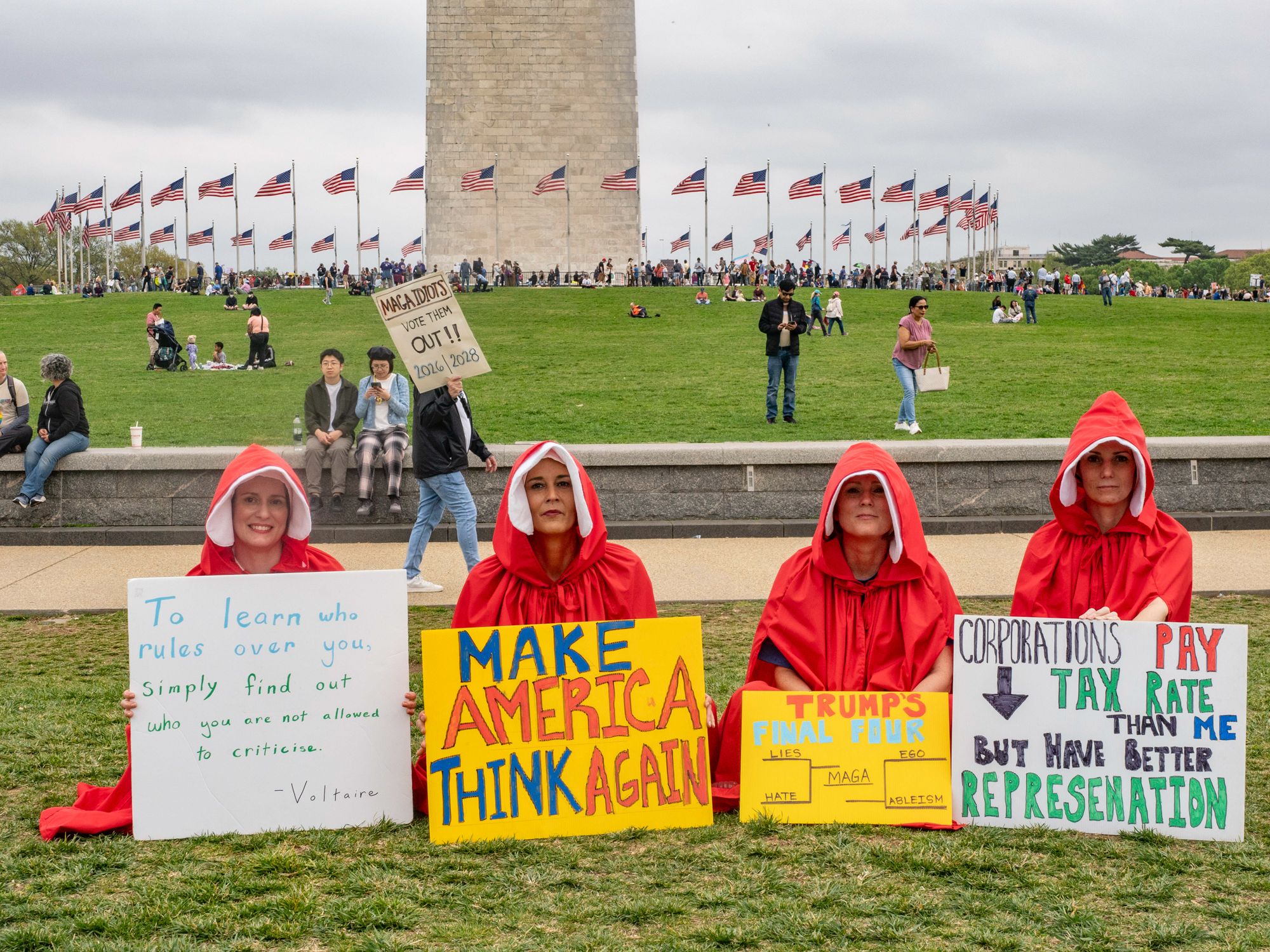 Probal Rashid / ZUMA Press Wire / Scanpix / LETA Протестующие в образе героинь антиутопического сериала «Рассказ служанки». 5 апреля 2025 года