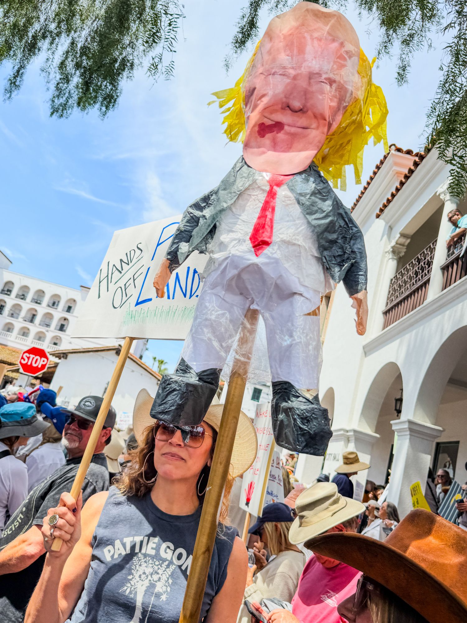 Amy Katz / ZUMA Press Wire / Scanpix / LETA Участница митинга с самодельной куклой Трампа. 5 апреля 2025 года