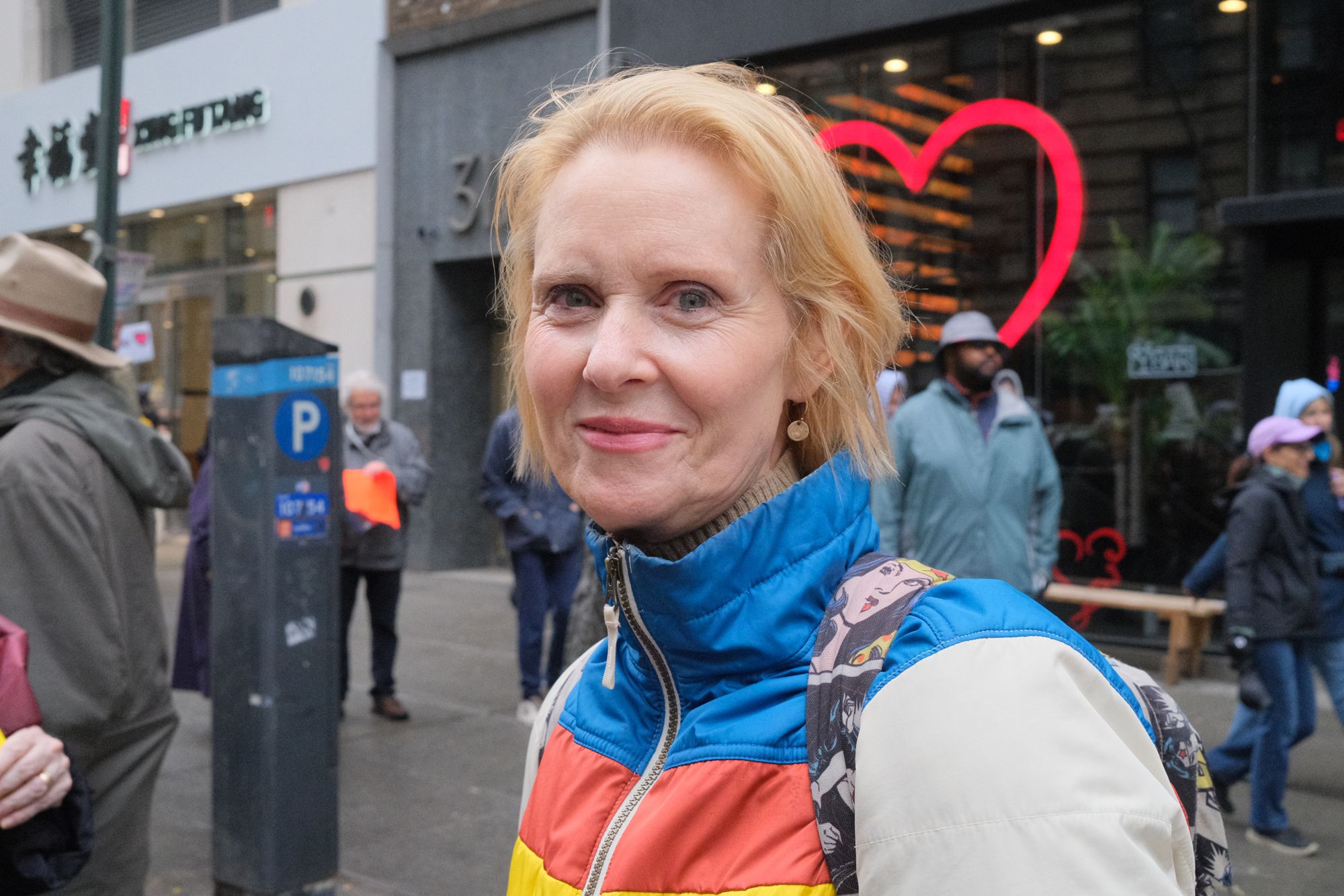 Milo Hess / ZUMA Press Wire / Scanpix / LETA Актриса Синтия Никсон («Секс в большом городе») на акции протеста «Руки прочь!» в Нью-Йорке. 5 апреля 2025 года
