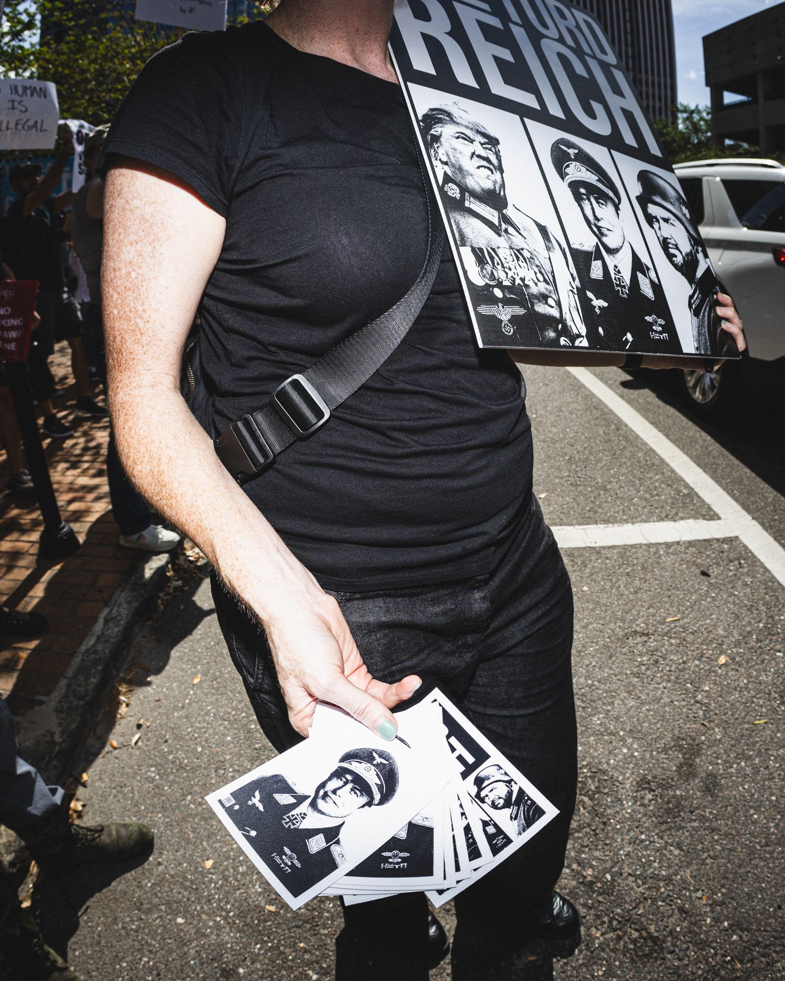 Dave Decker / ZUMA Press Wire / Scanpix / LETA Изображения Дональда Трампа, Илона Маска и Джей Ди Вэнса в образе нацистов. 5 апреля 2025 года