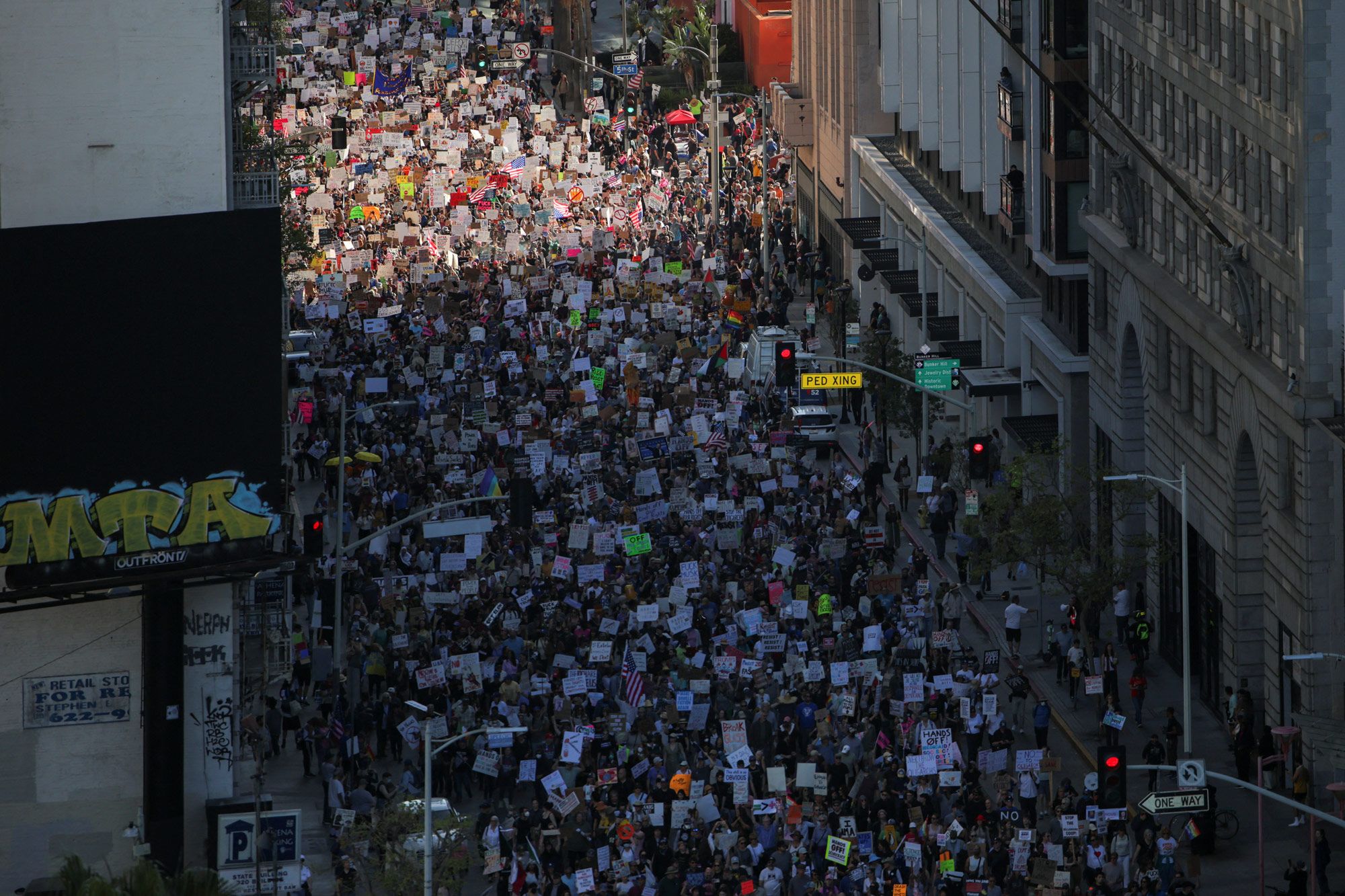 Протесты прошли в городах по всей стране, от центра Манхэттена до города Анкоридж на Аляске. Так, в Сиэтле протестующие вышли с плакатами «Борись с олигархией». Многочисленные акции проходили на улицах Портленда, Орегона, Лос-Анджелеса. В Бостоне демонстранты несли плакаты «Руки прочь от нашей демократии» и «Руки прочь от социального обеспечения», в Лос-Анджелесе — «Руки прочь от образования», «Сопротивляйтесь».