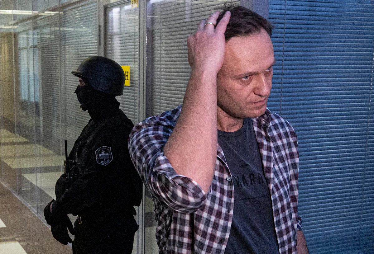 Алексей Навальный и сотрудники полиции в штаб-квартире Фонда борьбы с коррупцией (ФБК) в Москве, Россия, 26 декабря 2019 года. Фото: Сергей Ильницкий / EPA