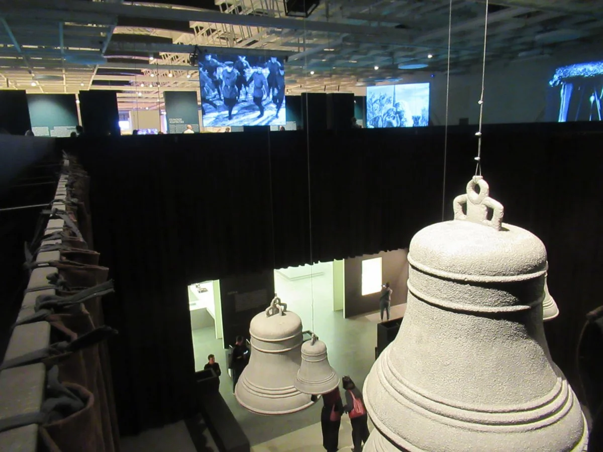 Значительную часть второго этажа занимает своеобразный кинозал с несколькими экранами, на которых в режиме нон-стоп идут агитационные ролики времен войны. На них молодые сильные и сытые колхозники, радостно улыбаясь, собирают урожай зерна, стоя на вершине гигантских пшеничных конусов.