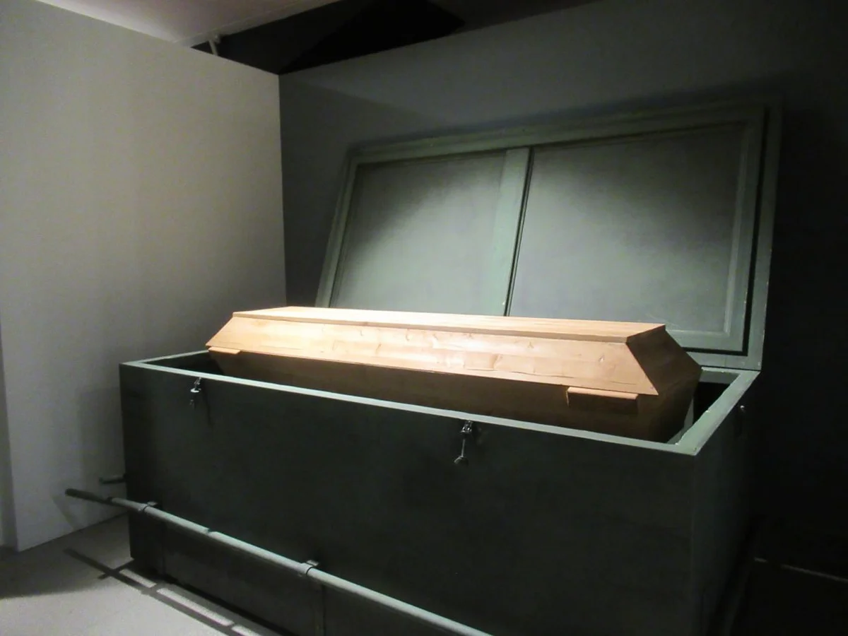 Экспонат очень символичный и красноречивый: когда дом горит, кто-то спасает детей и стариков, кто-то — вещи и документы. Советская власть увозила от наступающей гитлеровской армии гроб с телом вождя.