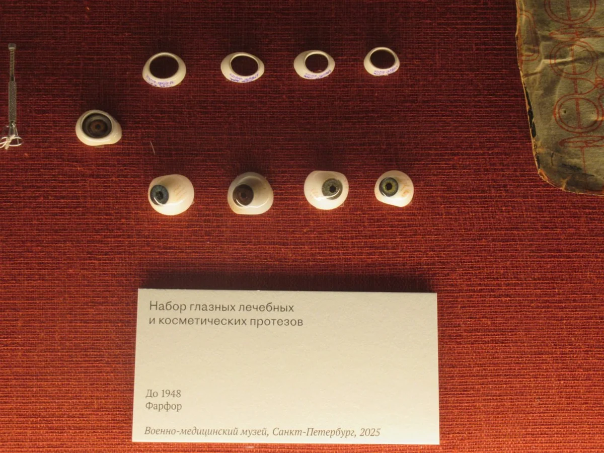 «Медицина» представлена набором документов, хирургических инструментов, макетов аппаратов для реабилитации, образцами протезов конечностей и серией рисунков из «Атласа огнестрельных ранений» с натуралистическими изображениями тяжелых ран на лице и способов пересадки кожи. На перегородках — сухие сводки о том, сколько госпиталей работало в тылу, сколько раненых вернулось на фронт. И ни слова об огромном числе инвалидов войны и их страшной судьбе: с 1950 года одиноких людей без рук или ног, а то и совсем без конечностей, обездвиженных, начали переселять с глаз долой, подальше от обычной жизни, на остров Валаам, в специально созданный интернат. Там те, кто мог двигаться и работать, работали, чтобы прокормить себя, и ухаживали за лежачими. На Валааме их называли «самовары Сталина» — так советская власть отблагодарила героев войны за их подвиг и самопожертвование. Но об этом выставка молчит.