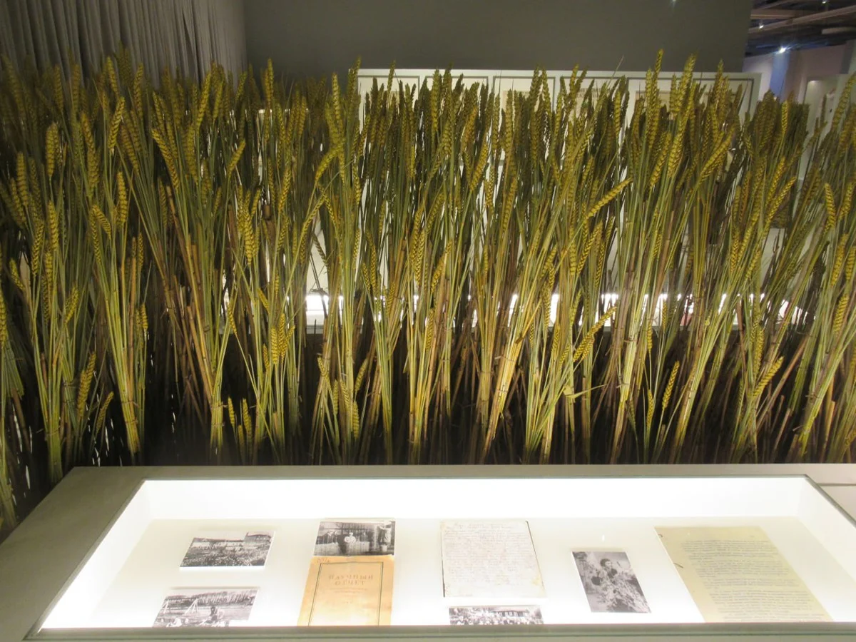 Почему-то в раздел «Сельское хозяйство» попали рисунки и поделки детей ленинградских журналистов: в начале войны этих детей вывезли из Ленинграда в Ярославскую область, потом в Татарстан. В витринах лежат симпатичные картинки, открытки, игрушки, сделанные руками детей, — и снова никакого рассказа о судьбе этих детей, о людях, которые помогали им выжить. И ни слова об Анне Лазаревне Мойжес — легенде журналистики, которая всю эвакуацию провела с этими детьми, опекала их и в 1945 году привезла в Ленинград.