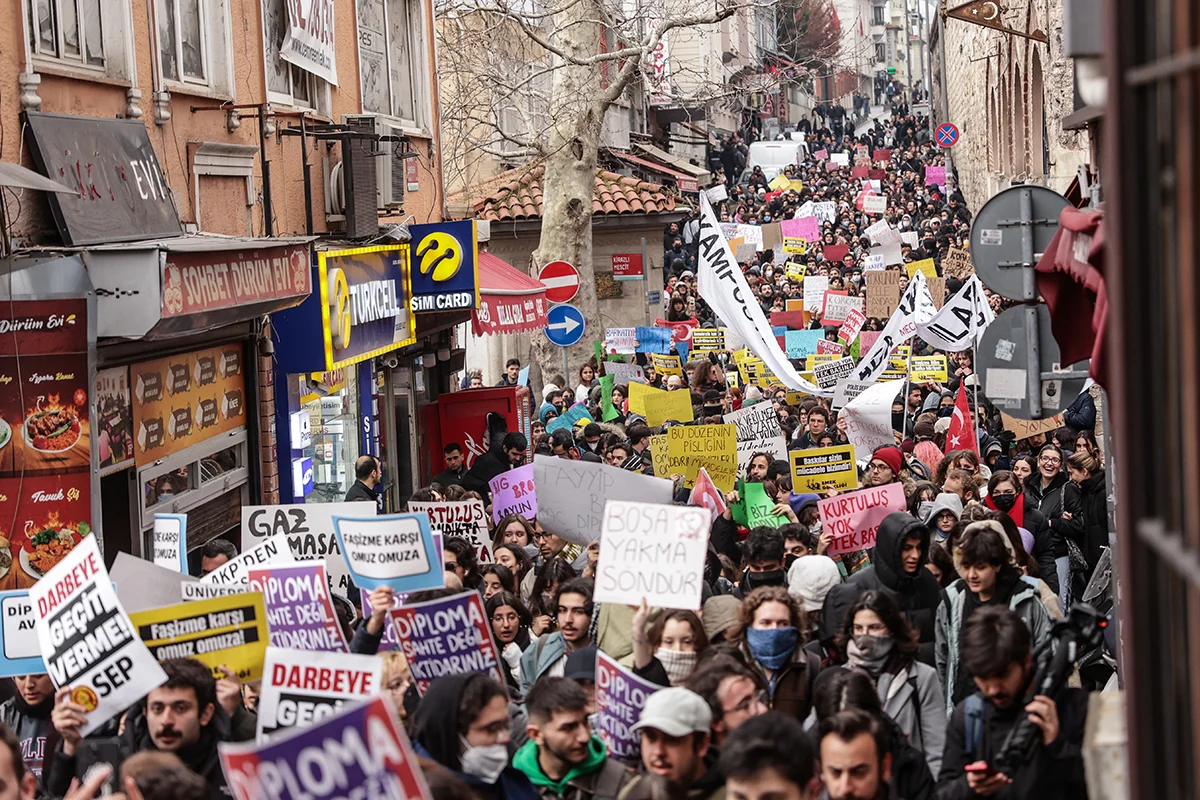 Арест мэра Стамбула Экрема Имамоглу — главного оппозиционного политика Турции — привел в конце марта к массовым протестам в разных уголках страны. Полиция применяла слезоточивый газ, стреляла по людям резиновыми пулями и задержала около двух тысяч человек. Движущей силой протестов стали Республиканская народная партия (членом которой является Имамоглу) и студенты.