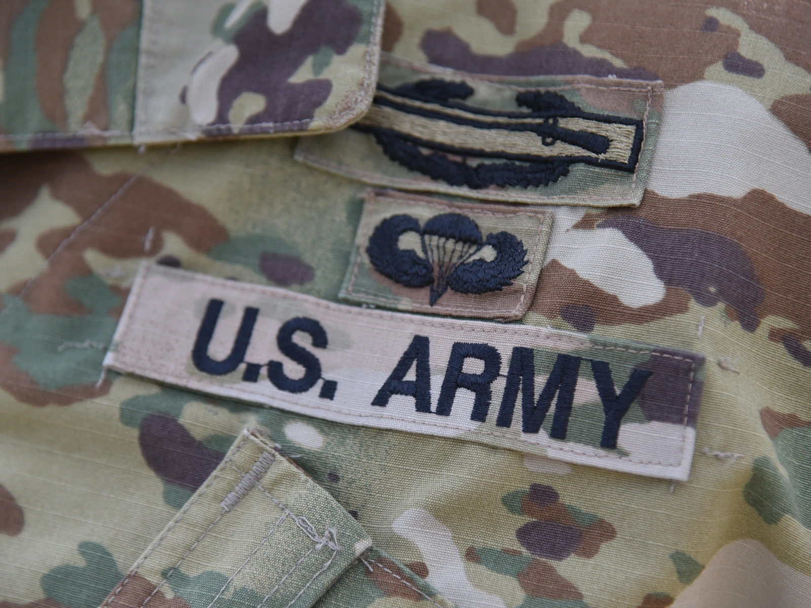 Фото: Шеврон инструктора армии США, совместные военные учения Rapid Trident 2019 в Международном центре миротворчества и безопасности Национальной академии сухопутных войск возле Львова, Украина. Mykola Tys / SOPA Images/Sipa USA