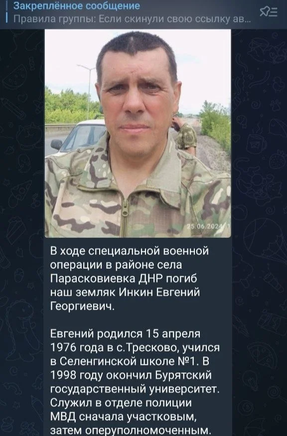 Информацию о смерти Инкина на СВО заметил один из читателей в городском паблике «Что творится в Селенгинске». Инкин погиб еще в августе 2024 года в районе села Парасковиевка.