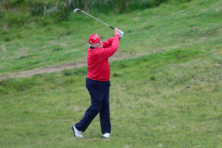 Дональд Трамп играет в гольф на поле Trump International Golf Links в Дунбеге, Ирландия, 4 мая 2023 года