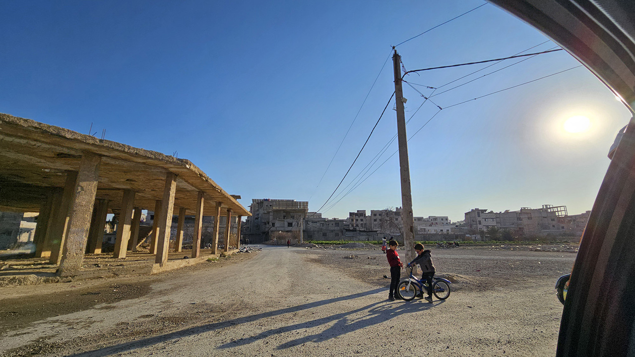 Однако стоит отъехать несколько километров от центра Дамаска, как картина уже совершенно иная. Множество детей бегают с протянутой рукой или роются в мусорных контейнерах в поисках еды, а женщины ломают ветки деревьев, чтобы топить дома. Все это происходит на фоне бесконечных разрушений, руин, в которых продолжают жить люди. Самая чудовищная картина наблюдается в предместье Хараста, входящем в Восточную Гуту, где были, возможно, самые разрушительные бомбардировки за всю историю конфликта, а в 2013 году проводилась химическая атака.