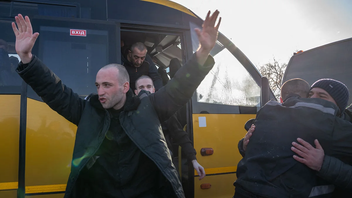 Украинские солдаты, вернувшиеся домой после обмена военнопленными между Россией и Украиной, 31 января 2024 года. Фото: ABACA / Scanpix / LETA