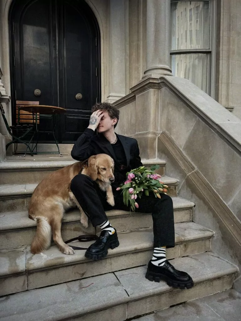 В 2020 году я познакомился с Валди — моим первым парнем. Он поляк, мы жили в Лос-Анджелесе в одном здании и встретились, когда гуляли с собаками. В 2022 году мы с Валди и двумя собаками переехали в Нью-Йорк и начали свой бизнес: открыли магазин одежды и сделали эко-бренд — хотели продавать органическое мыло, мочалки, алтайские чаи и косметику. Чтобы найти клиентов, участвовали в различных уличных маркетах.