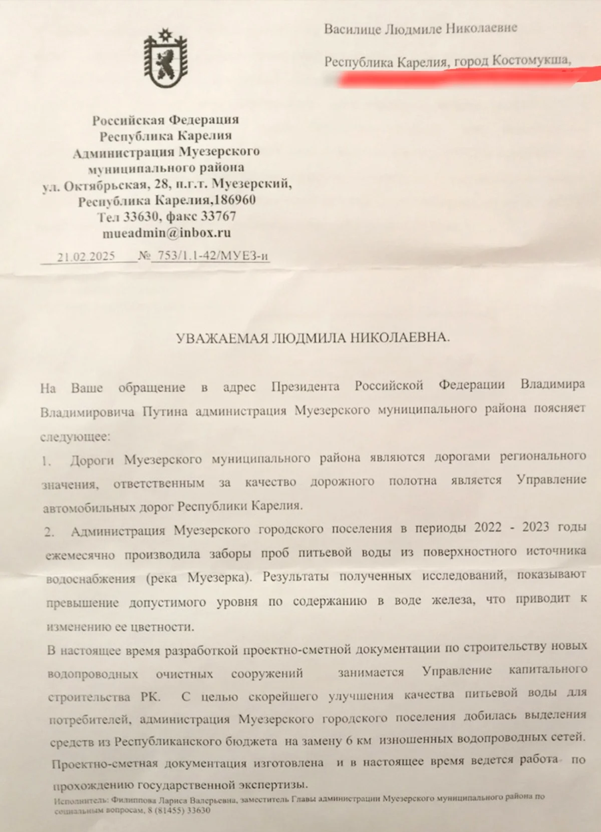 «Жители Муезерского района давно не верят ни местной администрации, ни правительству Карелии. Жители понимают, что, не имея транспортного сообщения, после ликвидации местного самоуправления они совсем будут никому не нужны со своими проблемами, которые не решаются много лет. Понимают, что обещания главы региона пустые, за последние годы в районе так и не отремонтировали дороги, транспортное сообщение не улучшилось, медицина малодоступная. Для чего было обещать дополнительный импульс развития района? На встрече с местными жителями глава Карелии Парфенчиков признался, что территория у района очень большая, а плотность населения маленькая, дороги строились для лесопроизводства, строились эти поселки типа как в фильме «Девчата» (приведенный им пример). И сейчас на ремонт этих дорог надо потратить много миллиардов рублей».