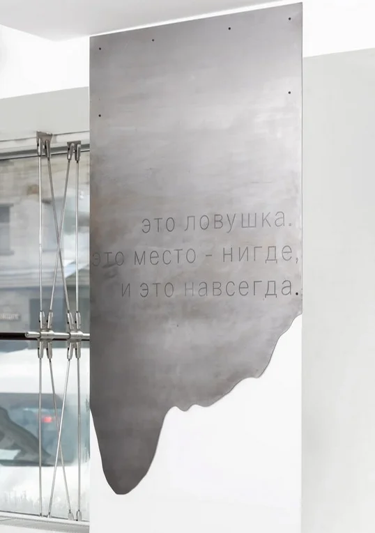 Время перестает ощущаться линейным, вместо этого его течение приобретает циклический характер, и это ощущение как раз и есть чувство капкана, ловушки, на уходящие вверх стены которой проецируются мозаичные образы, сочетающие в себе бравую советскую символику, хмурые лица заводских пацанов из 1990-х и современные документальные видеосъемки, снятые с дрона.