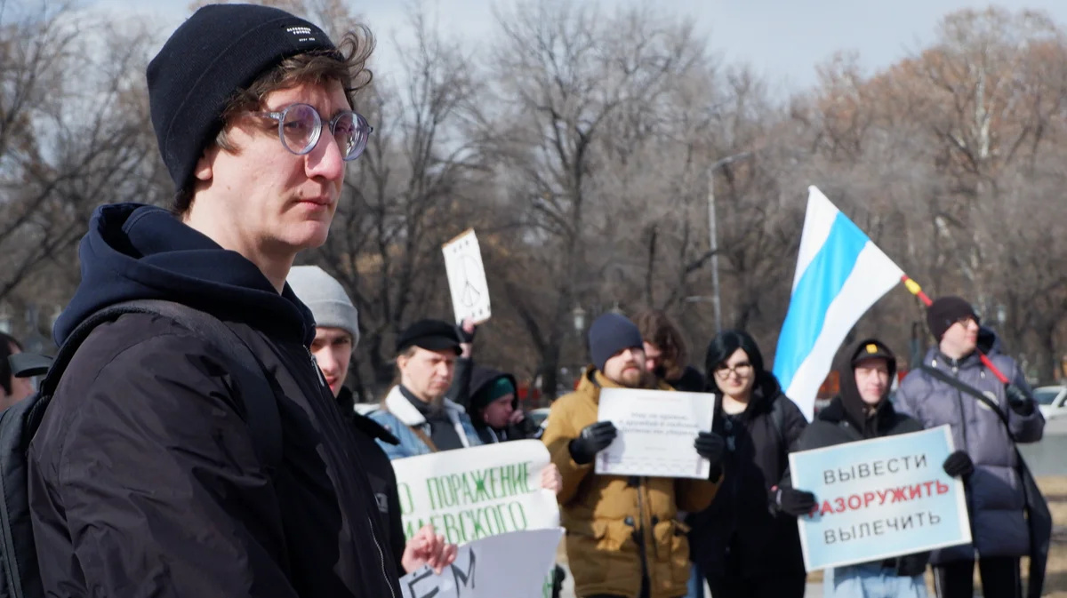 Даниил Чебыкин на антивоенном митинге в Ереване. Фото: Андрей Новашов