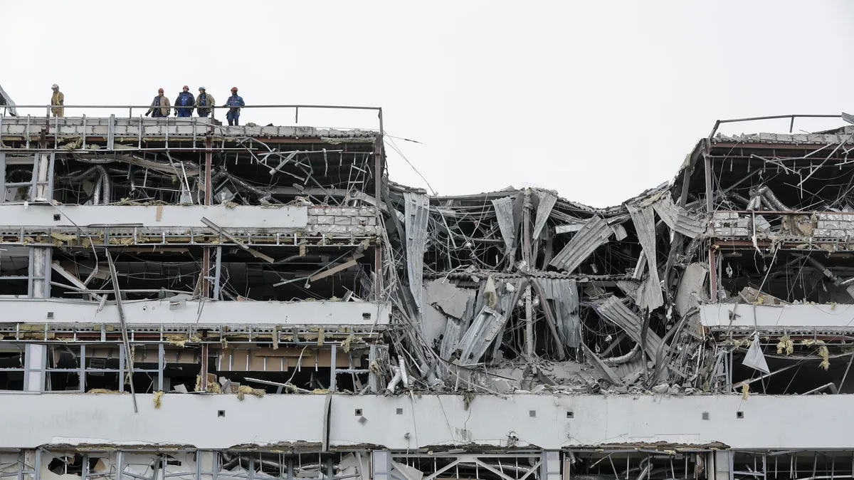 The aftermath of a missile strike on a building in Kyiv, Ukraine, 6 April 2025. Photo: EPA-EFE/SERGEY DOLZHENKO