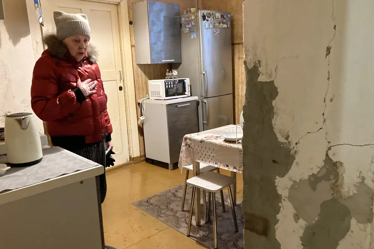 Yelena Anatolyevna’s floor collapsed in 2023. The toilet went with it, the pipe gushed water, and the place was flooded.