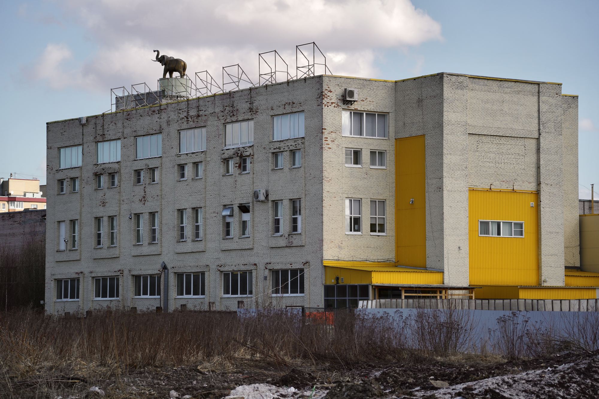 Если ехать по Красносельскому шоссе в сторону Пушкина, в отдалении можно заметить скульптуру слона на заводском здании. «Позолоченный» слон стоит на обветшавшем постаменте прямо на крыше. Скульптура стала местной достопримечательностью, обзавелась карточкой на «Яндекс Картах», но мало кто знает, как и почему слон появился в Пушкине. «Бумага» разобралась, как так вышло.