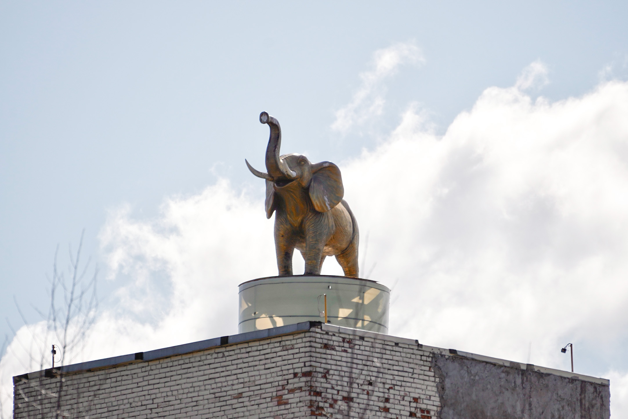 Тогда же появился и слон на крыше. Местные вспоминают, что когда-то скульптура крутилась вокруг своей оси (это подтверждают и отзывы о ней на «Яндексе»), а один из собеседников «Бумаги» даже утверждает, что время от времени слон даже трубил. Впрочем, подтверждений этому мы так и не нашли.