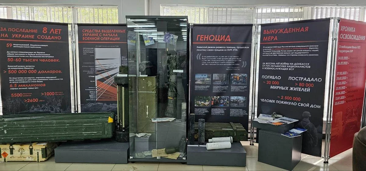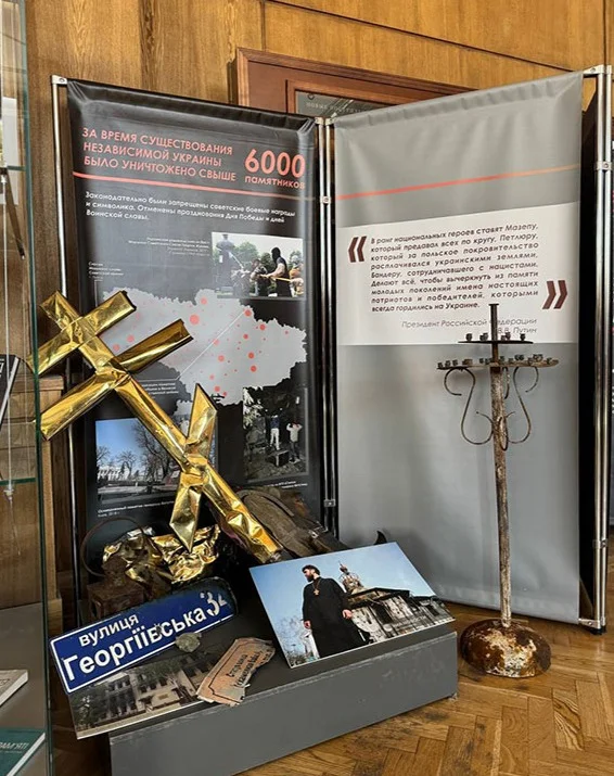 Конечно, от выставки, организованной Российским историческим обществом, фондом «История Отечества» и Музеем Победы, не ждешь объективности и научной добросовестности, но проблема в том, что даже с пропагандистской точки зрения все это выглядит исключительно блекло. Все тезисы «планшетной» части экспозиции повторяют давно заученные мантры российской пропаганды, тогда как «предметная» часть выставки представляет набор абсолютно случайных предметов и книг, добытых в местах боевых действий.