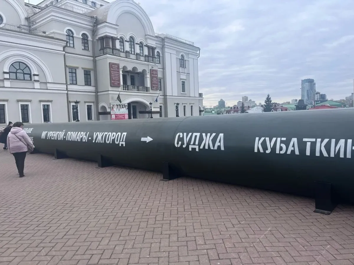 В Екатеринбурге во дворе Храма на Крови 24 марта установили копию трубы — 16 метров длиной и 1,42 метра в диаметре, как у оригинального газопровода. Посетителям предлагают пройти внутри, чтобы «прочувствовать условия, в которых находились российские военные». Инсталляцию организовали при поддержке «Газпром трансгаз Екатеринбург».