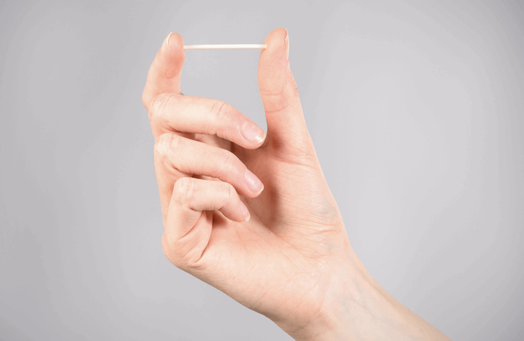 Это очень маленький (около 4 см) и тонкий гибкий стержень из биосовместимого пластика. Он вводится в плечо женщины через крошечный прокол на коже и действует на протяжении нескольких лет. Однако его можно извлечь раньше, если женщина решит забеременеть — фертильность восстановится в ближайшее время.