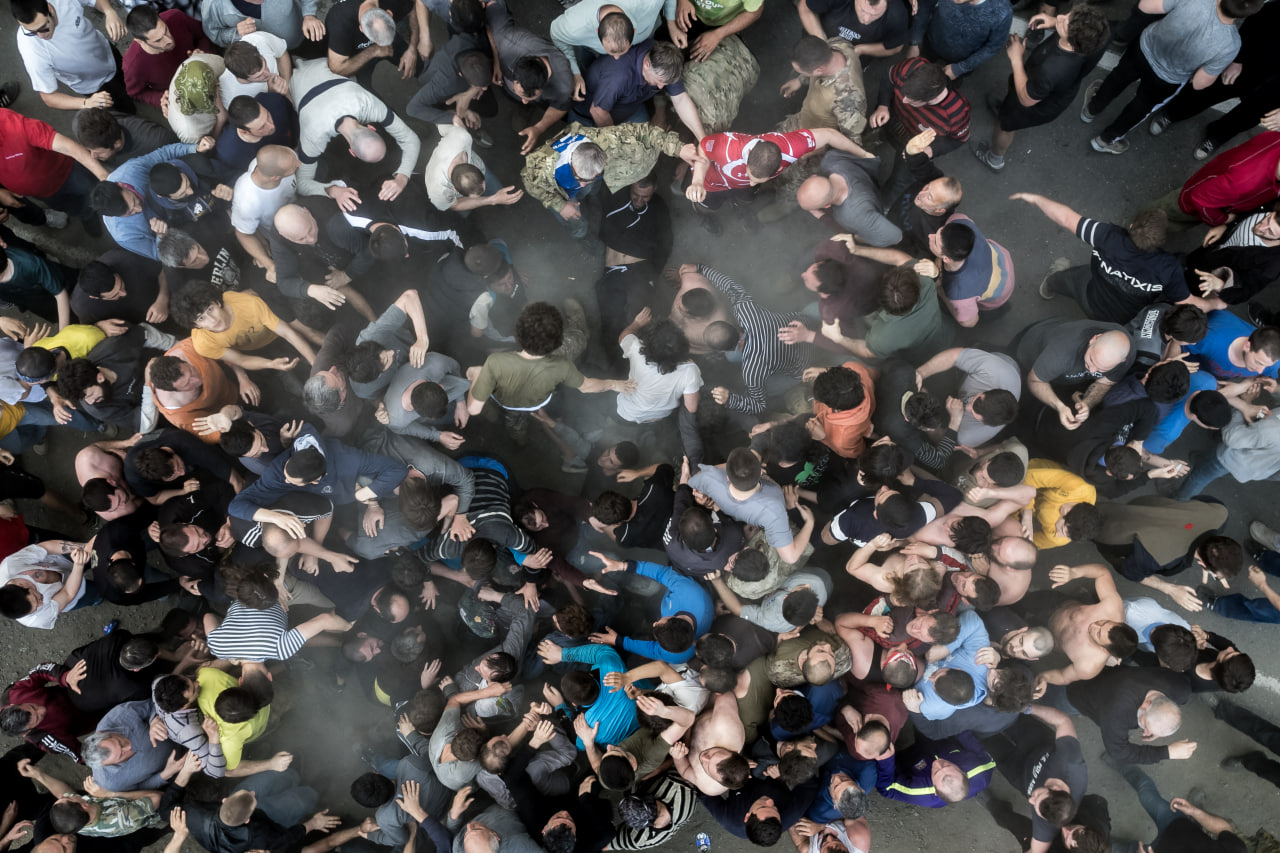 Начало выдалось адреналиновым и очень веселым — изначально мяч двигался в одну из сторон с большим трудом. Всё поменялось, когда игроки начали уставать. Несмотря на жесткие правила, участники пытались снизить уровень опасности. Каждый раз, когда кто-то падал, все поднимали руки и кричали «стоп!», чтобы его вытащить и не задавить. Тем не менее одному человеку всё же понадобилась скорая помощь — в давке он потерял сознание.