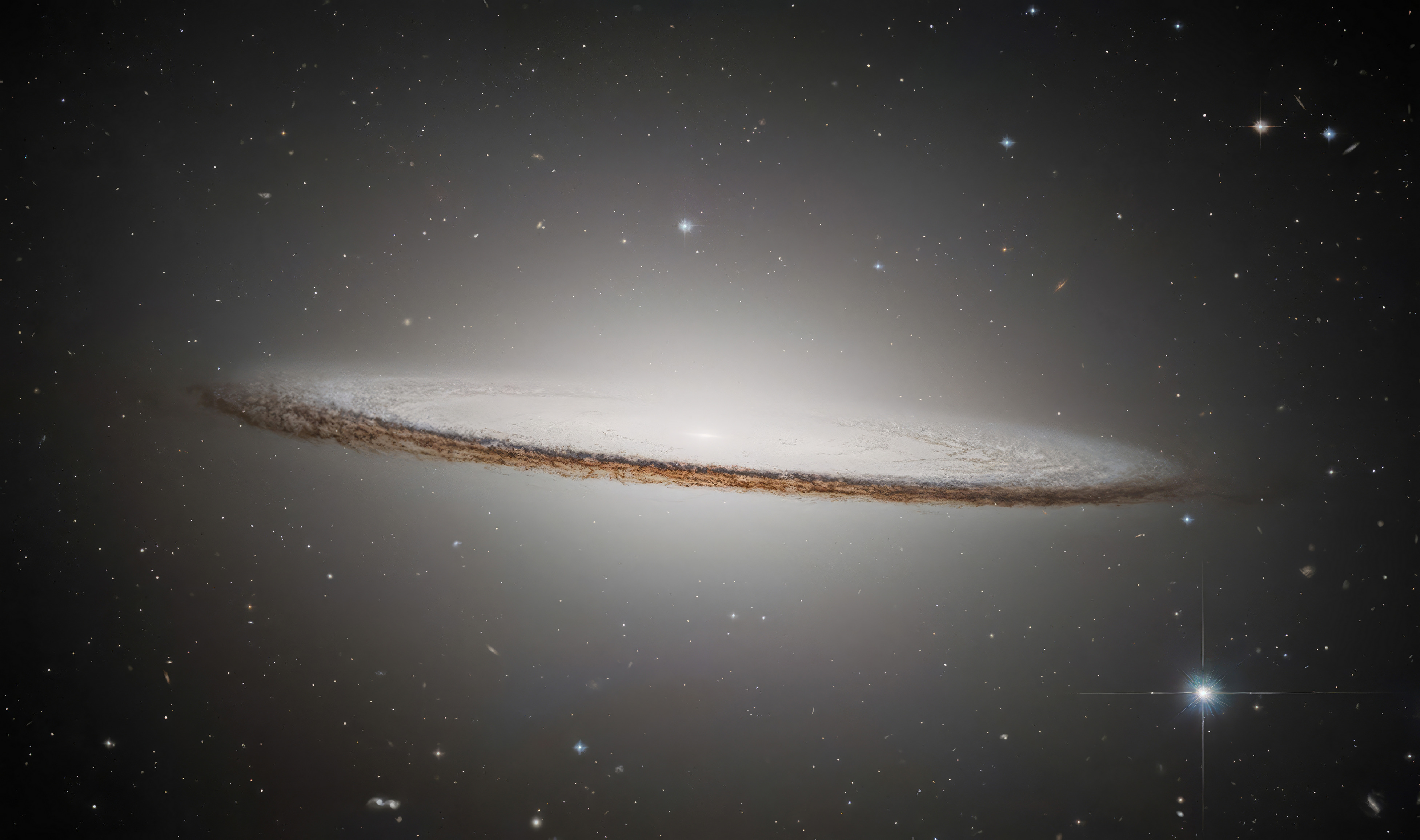 Одна из особенностей, делающих эту галактику особенно примечательной, — угол обзора, который составляет всего шесть градусов от экватора галактики. С этой точки зрения замысловатые скопления и нити пыли выделяются на фоне блестящего белого ядра и выпуклости галактики, создавая эффект, похожий на Сатурн и его кольца, но в эпическом галактическом масштабе.