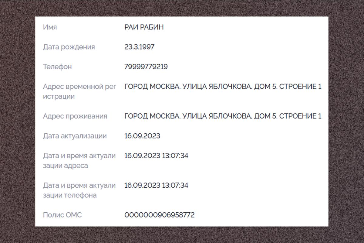 «Важные истории» обнаружили результаты этого взлома в нескольких агрегаторах утечек. Один из них называет источником информации медицинскую систему ЕМИАС. В частности, эта база содержит поля «Страховая компания», «Страховой полис» и «Дата страхового полиса». Адрес проживания человека, как следует из выгрузки, был обязательным полем. Именно в этом поле иностранцам указывали адрес пункта отбора на контракт на улице Яблочкова.