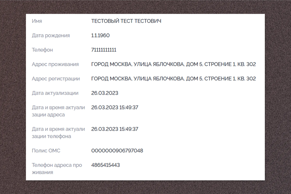 The center for recruiting contract soldiers began operating on April 1, 2023. Signs of preparation for receiving the first volunteers can be seen in the EMIAS leak about a week before the launch of the center. At that time, data on two “namesakes” — “Testovy Test Testovich” and “Testov Test Testovich” — were entered into the system. Their address was listed as the building on Yablochkova Street. Both Moscow’s authorities and pro-government media reported that the recruitment center staff had access to the EMIAS system.