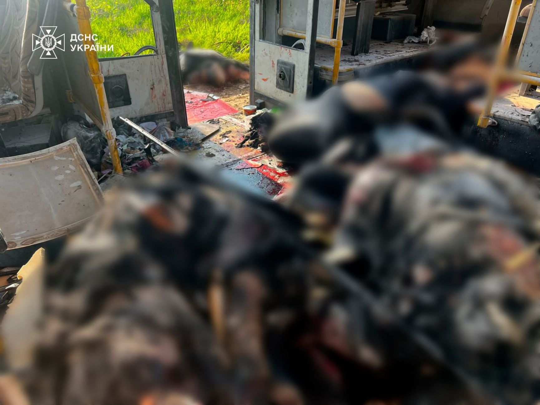 Последствия удара дрона по автобусу в городе Марганец
