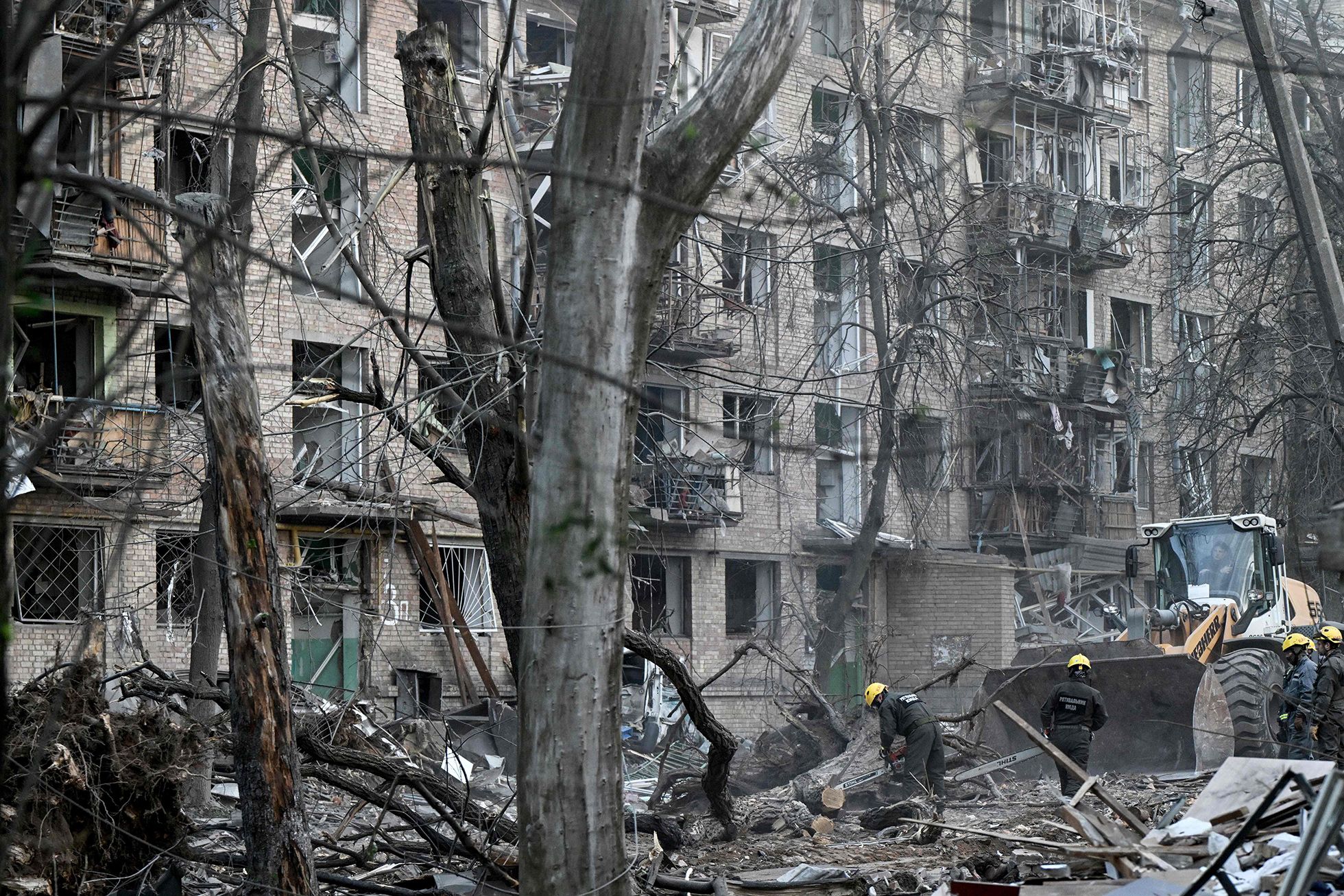Российские войска в ночь на 24 апреля нанесли удар по Киеву баллистическими ракетами и беспилотниками. Больше всего разрушений в Святошинском районе, где удар пришелся по жилому дому. Также обломки беспилотников, как сообщал мэр Киева Виталий Кличко, упали в Голосеевском, Подольском и Шевченковском районах столицы.