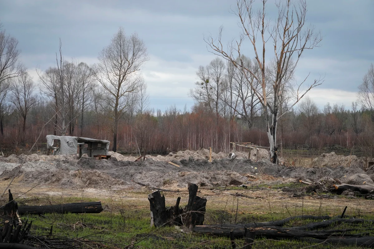 В тот же период руководитель «Энергоатома» Пётр Котин вместе с коллегами обследовали один из участков так называемого «Рыжего леса», который во время аварии на ЧАЭС принял на себя наибольшую долю выброса радиоактивной пыли. На этом пространстве российские военнослужащие копали траншеи и пытались строить фортификационные сооружения. «Один из показателей, формирующих внутреннее облучение, которое получили оккупанты на поверхности почвы (бета-загрязнение), в местах замера составлял по 90 Sr, что в 160 раз выше нормы. Другим показателем внутреннего облучения является альфа-загрязнение, которое формируется вследствие разбросанных по этому участку “Рыжего леса” фрагментов облученного ядерного топлива, графитовой кладки, в частности», — отметили специалисты в отчете. И заключили: «Фрагменты находятся сейчас на глубине 40–80 см, оккупанты копали и глубже».