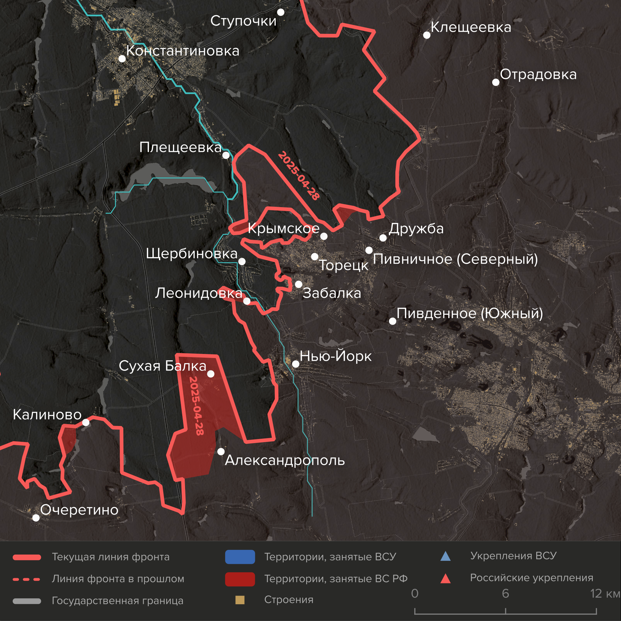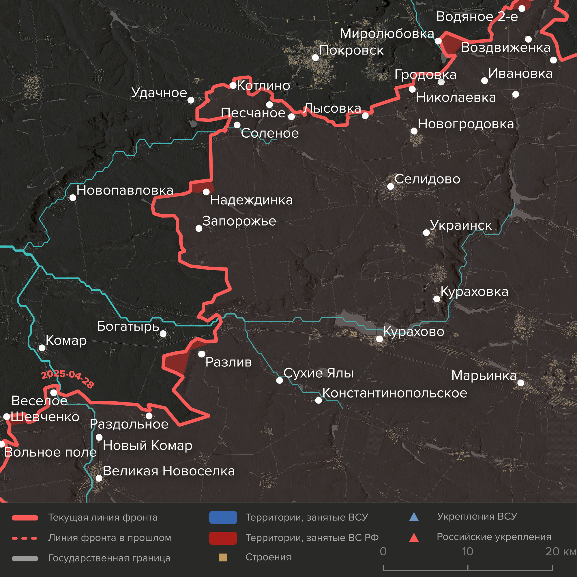 - ВС РФ, несмотря на контратаки ВСУ в марте и апреле, смогли удержать линию обороны к югу от Покровска.