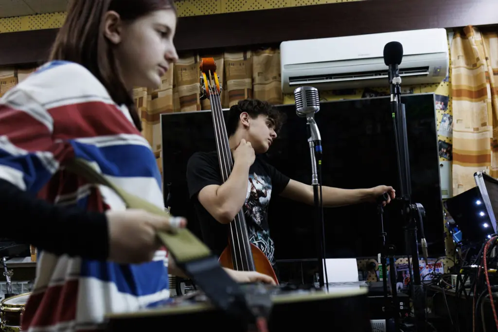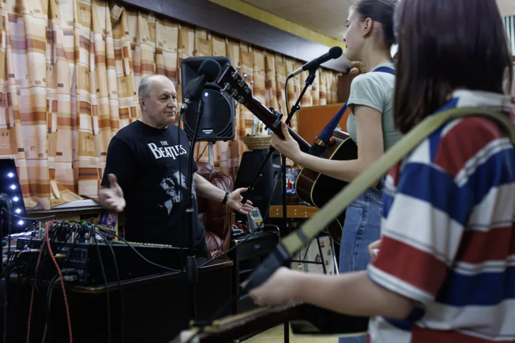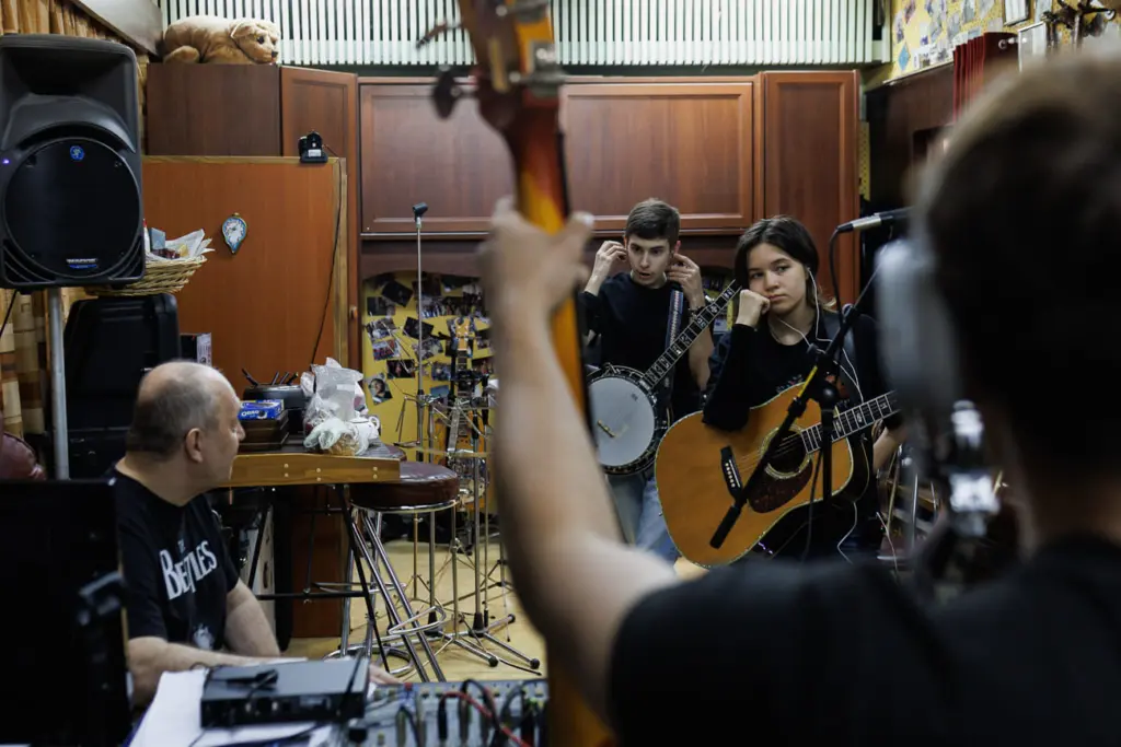 — Когда началась СВО, Юрьич очень сильно хотел сменить репертуар. Из-за того что мы не могли условиться с программой, стопорилась карьера. Но я ему доверяю, может, реально где-то нас отругали. Просто для нас это было слишком быстро, пришли на репетицию — раз — «английские песни всё, выкидываем». Сейчас всё нормально, Юрьич разрешает нам петь на английском в кантри-тусовках, — рассказывает Ксюша, пока мы общаемся с участниками группы на репетиции.