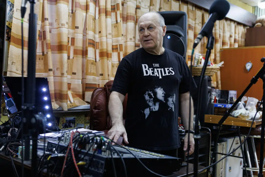 Репетиция ансамбля начинается в полвосьмого вечера и заканчивается за полночь. На небольшом столике у входа стоит чайник, лежат баранки, пряники и пачки сухариков. «Потому что они здесь подолгу сидят — надо перекусить», — объясняет Гвоздев.